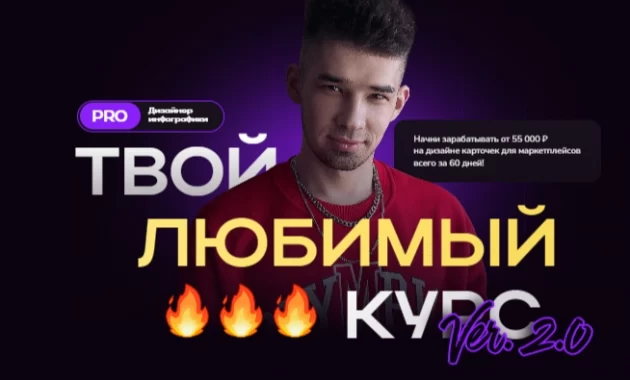 Твой любимый курс. Начни зарабатывать от 55 000 ₽ на дизайне карточек для маркетплейсов всего за 60 дней!