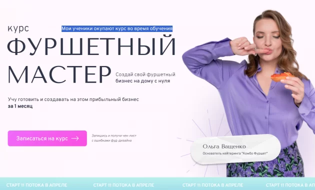 После курса вы сможете приготовить любой фуршет. Более 100 подробных видео рецептов. Полноценный блок по поиску и удержанию клиентов. Полезные чек-листы и памятки. Авторская автоматическая система подсчета себестоимости. После этого обучения вам не придется добирать знания еще где-либо.
