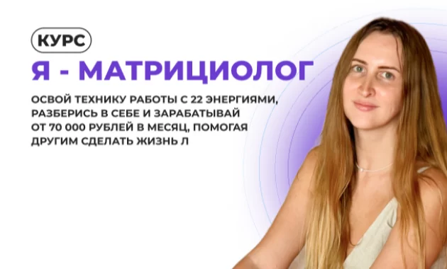 Освой технику работы с 22 энергиями, разберись в себе и зарабатывай от 70 000 рублей в месяц, помогая другим сделать жизнь лучше! Без опыта работы с матрицей, используя четкие и понятные инструкции, с результатом через 2 недели.
