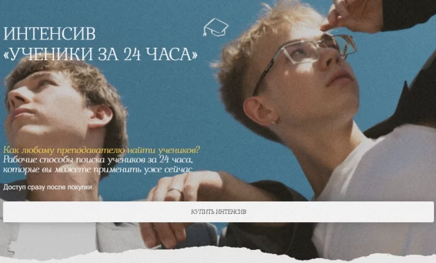 - Действующий преподаватель или репетитор по любому предмету, который хочет увеличить доход и найти больше учеников. На интенсиве я дам вам те инструменты, которые помогут вам найти учеников буквально за 24 часа.